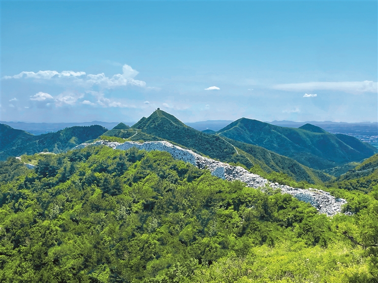 “我们村现存明长城遗址2.5公里,有独具特色的‘大理石长城’和‘圈城’,戍边将军修错长城被斩的历史故事传承了几百年。”朱岳峰说,村西山上的长城,城墙由当地纹理似大理石的岩石砌筑而成,村民称之为“大理石长城”。长城叠加绿水青山,构成这片土地的独特魅力。